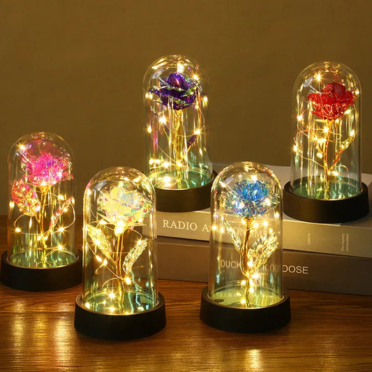 Valentines Day Gift Eternal Rose Acrylic Cover LED Light Foil Flower In Glass Cover Mothers Day Decoration Birthday Party Gift